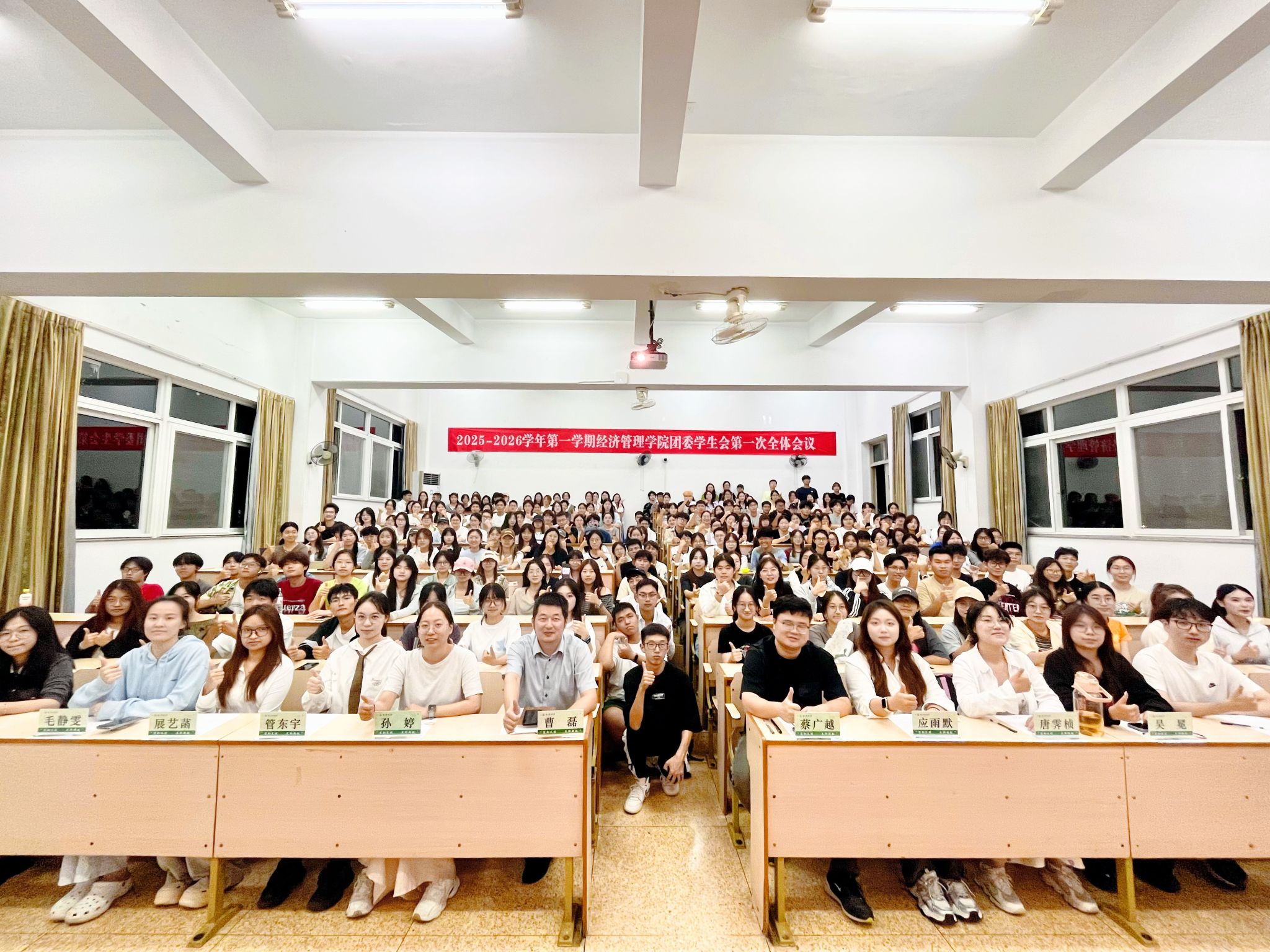 10月17日,2025-2026学年经济管理学院第一次团学大会在教学主楼102顺利召开。学院学生工作负责人、团委书记、学生会秘书长以及团委学生会全体成员参加会议。