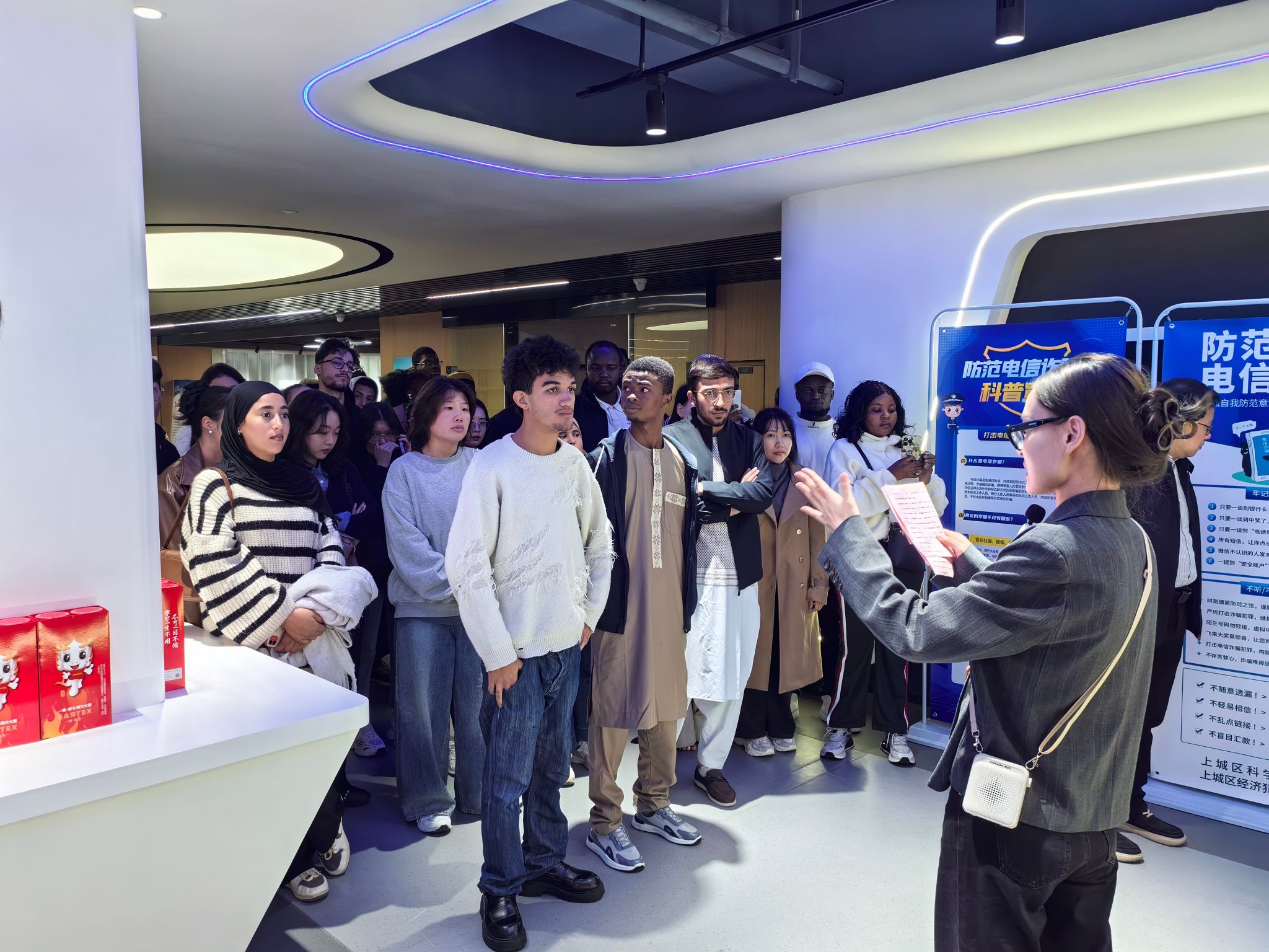 10月23日下午,国教学院组织来自20个国家的70余名留学生前往杭州市科普反诈体验馆,开展了一场别开生面的“沉浸式反诈”体验活动。
