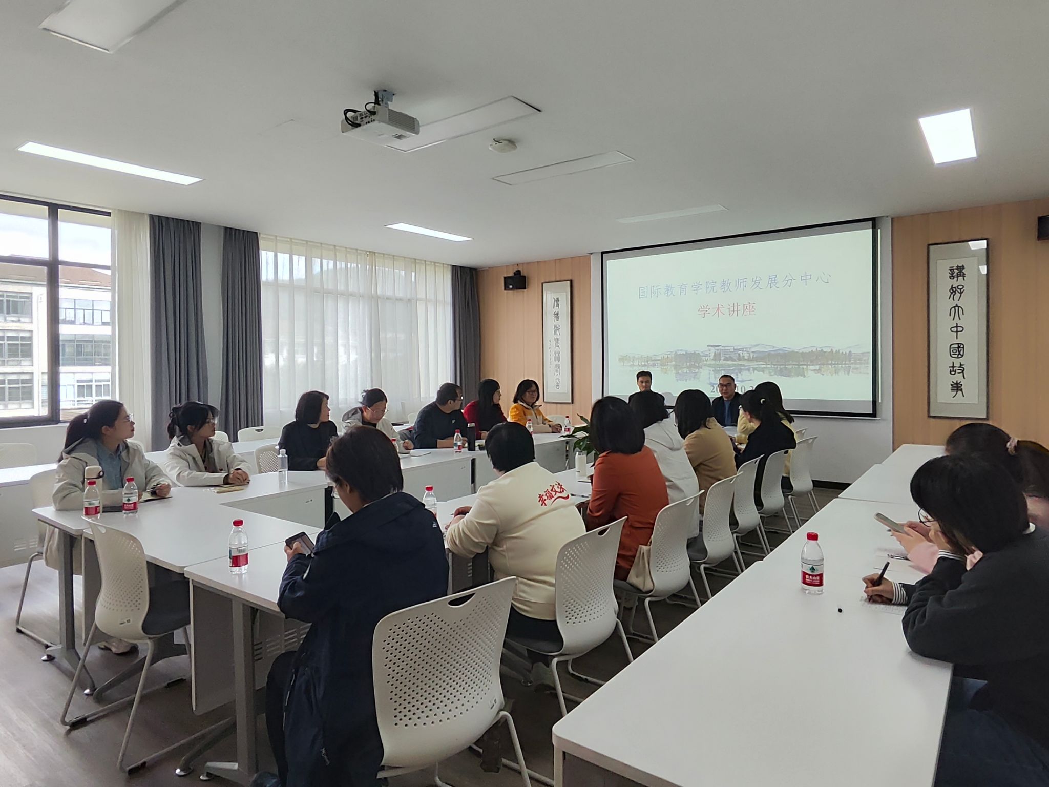10月24日,国际教育学院教师教学发展分中心特邀浙江师范大学胡伟杰教授来校作专题讲座,国教学院全体专任教师和文法学院部分外语教师参加会议。