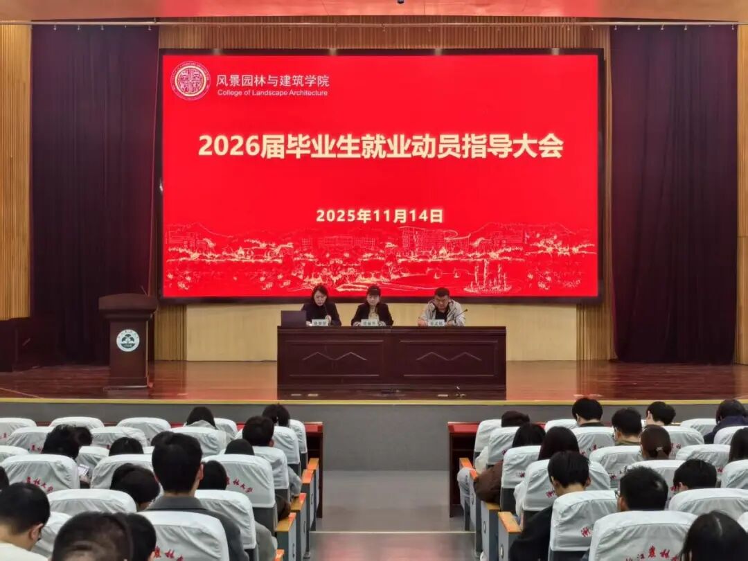 11月14日,园林学院2026届毕业生就业动员指导大会在图书馆第一报告厅召开。园林学院党委书记徐丽华,学院相关负责人,学生办相关老师以及2026届全体毕业生参加了此次大会。