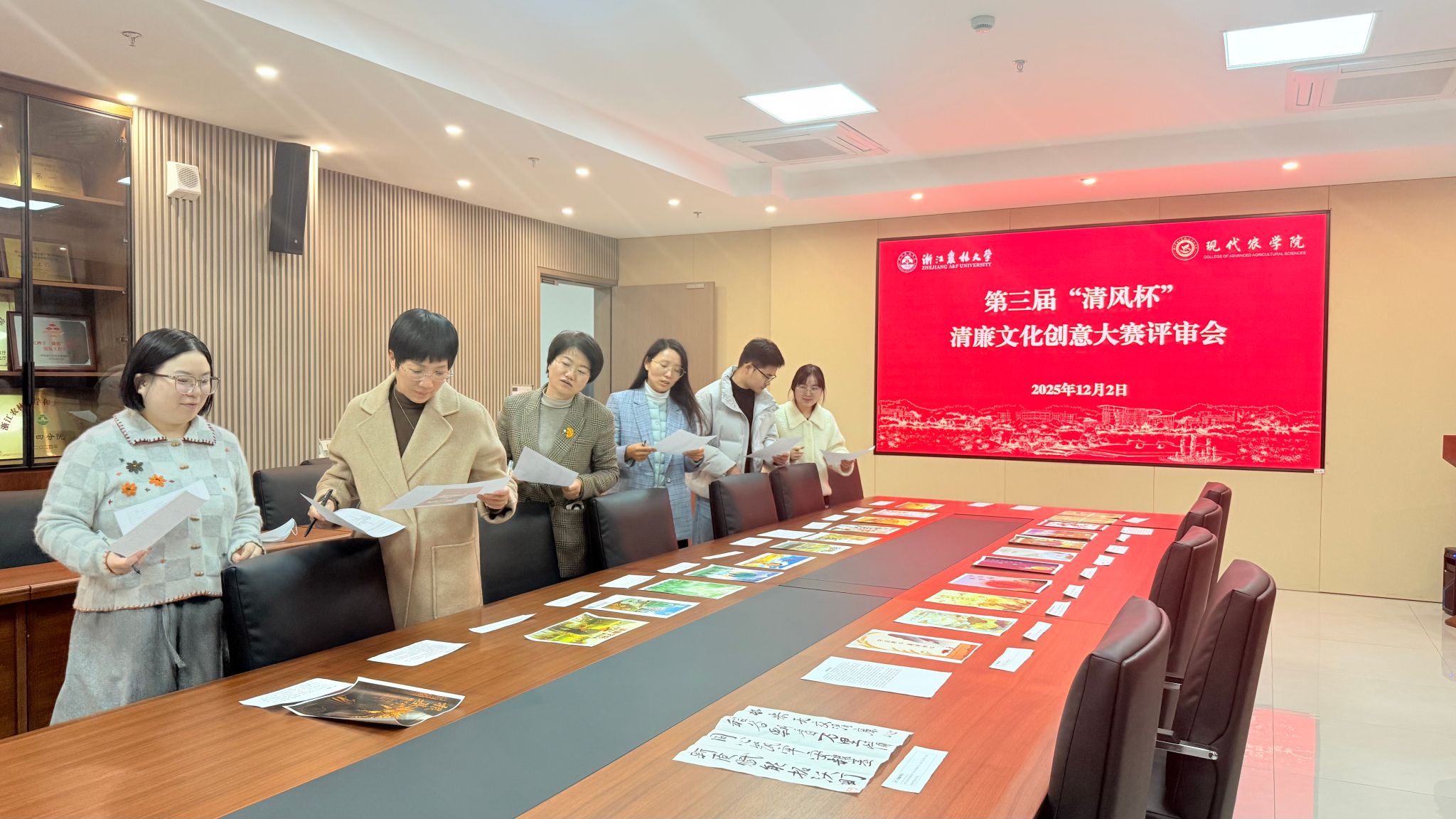 近日,由农学院党委、纪委主办,大学生党团协同中心承办的第三届“清风杯”廉洁文化创意大赛评审会在学17-502顺利举行。学院党委书记梁卫玲,学院相关负责人及全体辅导员参加评审活动。