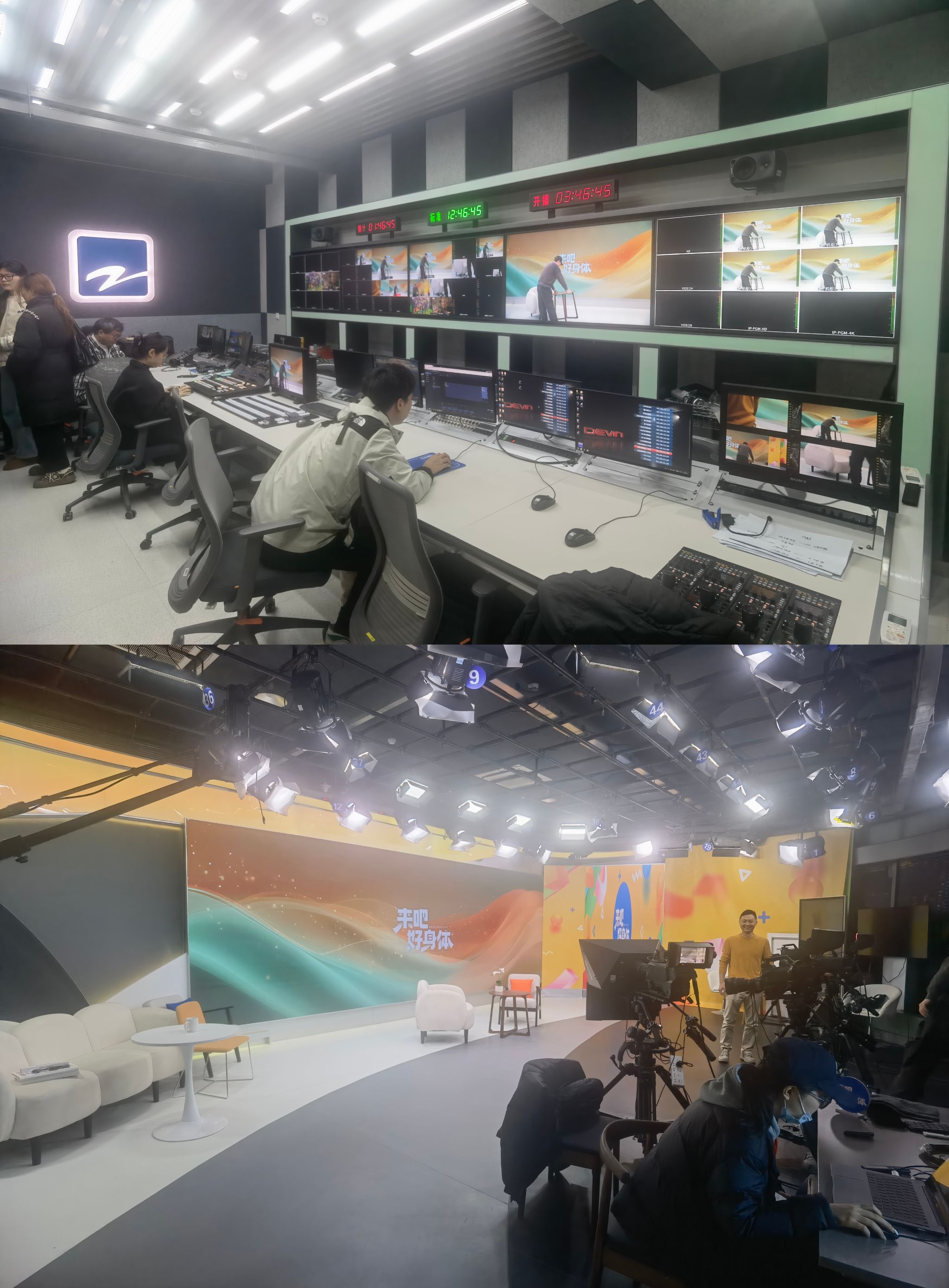 在浙江国际影视中心,同学们率先参观了浙江卫视首个4K超高清演播室。巨大的LED屏幕、多机位协同系统、智能化灯光调控设备,展现了当前广电行业在视觉呈现上的技术高度。随后走进导播间,亲眼目睹节目现场切换、音画合成、实时包装的全流程操作。不少同学表示,这是第一次如此近距离地理解“一场直播背后的精密系统”,对广告传播中涉及的视听语言制作有了更立体的认识。