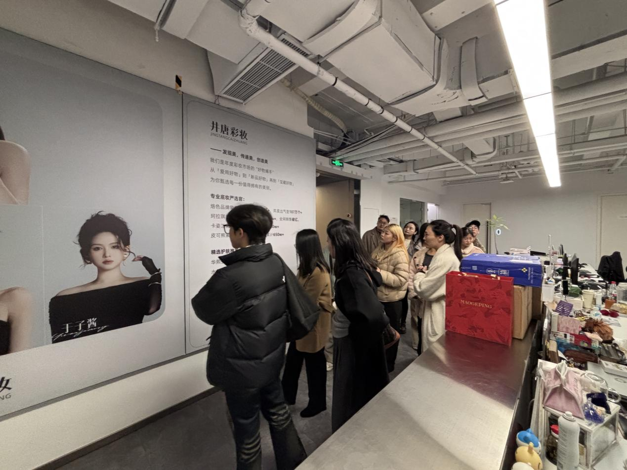 活动中,学员们依次参观了企业的化妆品研发展示区、彩妆产品陈列厅、女装设计工作室及直播运营中心,近距离了解产品从研发到销售的全链条流程。在随后的座谈会上,企业负责人分享了从初创到发展壮大的品牌发展历程,剖析了品牌打造、多品类运营、线上线下渠道融合的实战策略;学员们结合自身所学,就青年创业、品牌年轻化、电商行业发展前景等问题踊跃提问,企业管理层逐一细致解答,现场交流氛围热烈浓厚。