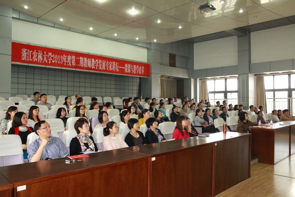 浙农林大新闻网讯 为贯彻《关于举办首届全国高校微课教学比赛的通知》(教培函〔2012〕7号)、《浙江省教育厅办公室关于组织参加首届全国高校微课教学比赛的通知》(浙教电传〔2013〕77号)的文件精神,BEAT365于4月16日下午在学11301举行了题为“微课与教学改革”的年度第二期教师教学发展专家讲坛。本次活动由杭州师范大学现代教育技术中心主任茅育青教授担任嘉宾,教务处负责人担任主持,各学院(部)分管教学负责人、参与微课教学比赛的教师、第二期青年教师研修班教师、校级及以上精品课程负责人参加了活动。