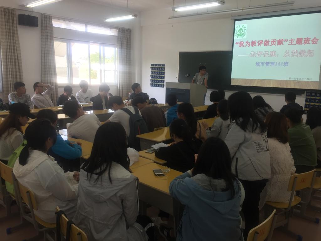 为进一步深化学生对教学审核评估重要性的认识,以“主人翁”的姿态迎接学校本科教学审核评估,4月12-19日,马克思主义学院、法政学院各班级先后开展“我为教评做贡献”系列主题班会,班主任、辅导员共同参与,并覆盖到每位学生。