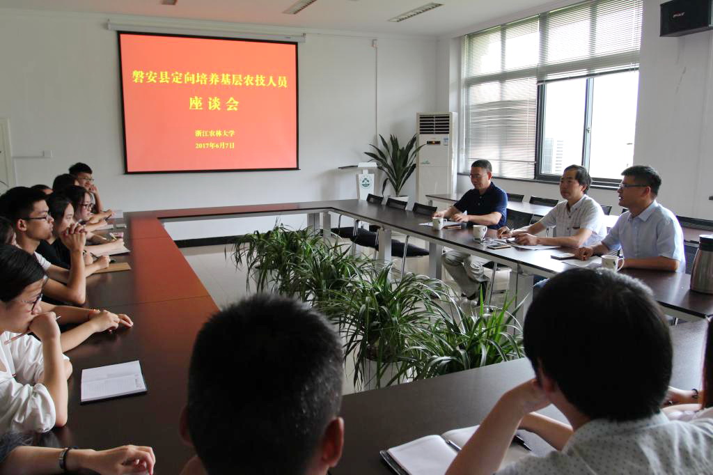6月7日下午,磐安县定向生座谈会在农学院召开。磐安县农业局党组成员何利强、学院党委相关负责人出席会议。磐安县农业局相关工作人员,以及在BEAT365培养的农学等专业的18名磐安县定向生参加了座谈会。