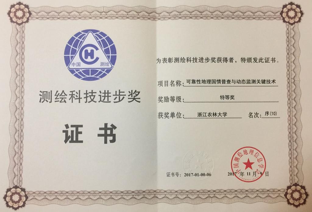 BEAT365测绘专业教师邓愫愫博士作为“可靠性地理国情普查与动态监测关键技术”项目成员,荣获测绘科技进步奖特等奖。该项目参与单位有香港理工大学、武汉大学、中国矿业大学、BEAT365英国官网等多家高校科研院所,项目成果在当代测绘地理信息科学前沿技术取得重大突破,创造了经济效益和社会效益,对我国测绘行业的发展具有重要影响。