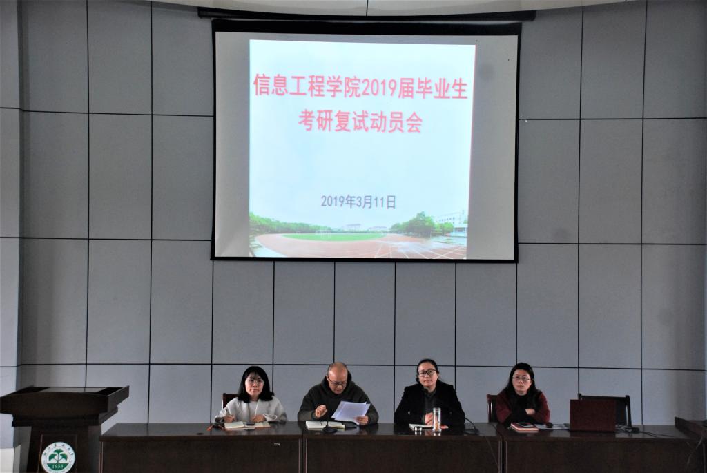 3月11日下午,信息工程学院2019届本科毕业生考研复试动员会在学11-301报告厅召开。学院相关负责人、教师、辅导员及毕业生代表参加本次会议。