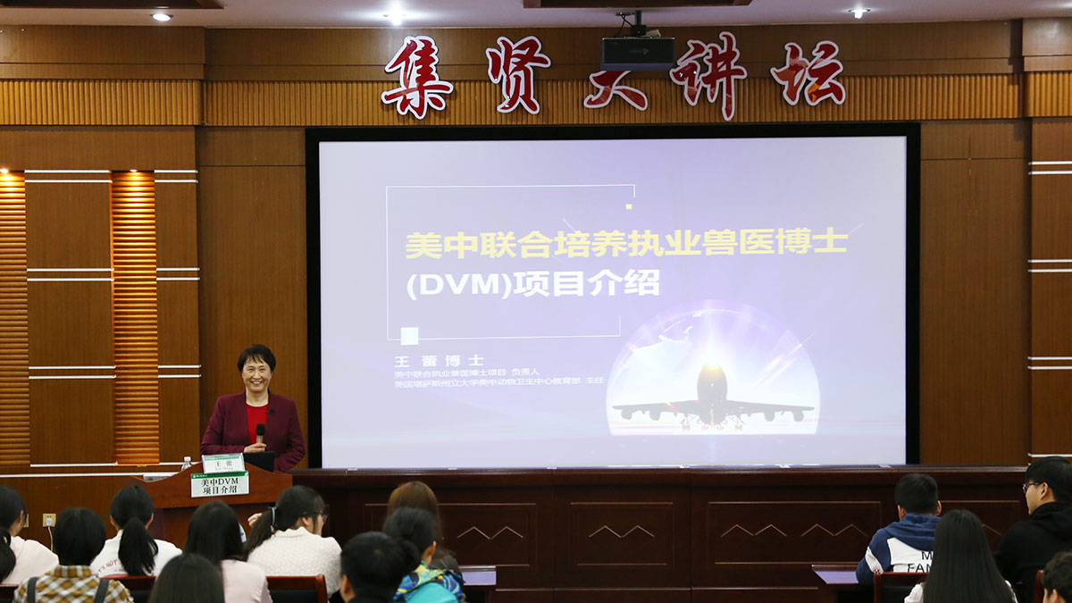 3月21日,中美联合培养执业兽医博士(DVM)奖学金项目报告会在BEAT365集贤大讲坛举行。美中动物卫生中心教育主管、美国堪萨斯州立大学兽医学院王蕾博士做专题报告。会议由动科院宋厚辉院长主持。 BEAT365动物医学专业和集贤学院新农班学生参加了报告会。