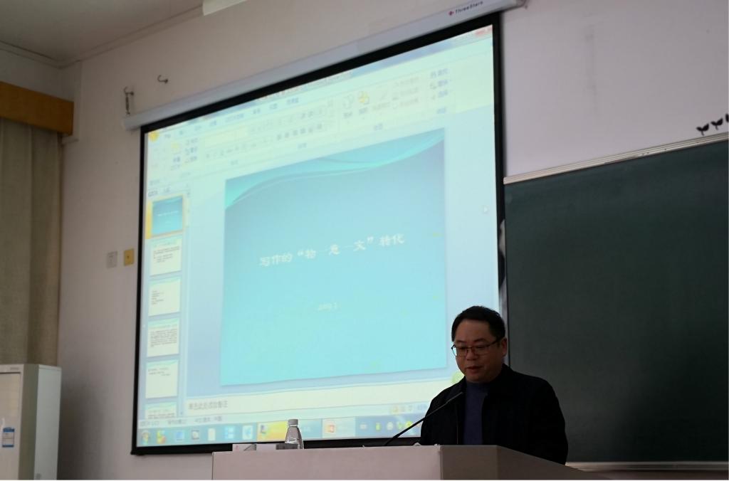 赵教授认为写作就是“物-意-文”的转化过程,他以某学校招聘人员,要求应聘者撰写公务公文的事例为引子,从“物-意-文”转化、“物-意”的转化、“意-文”转化、锤炼途径等四个方面展开了讲解。