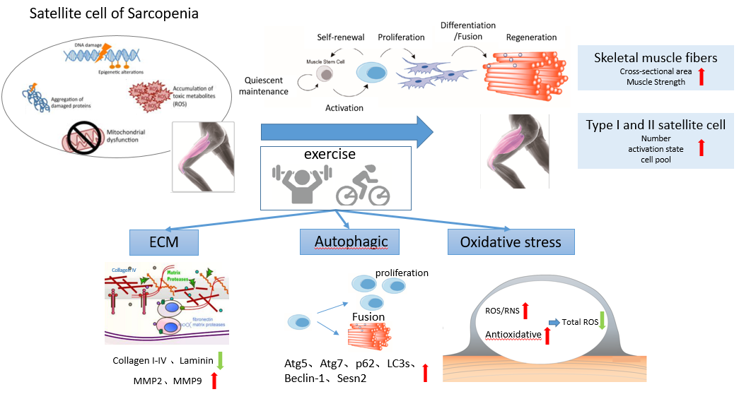 该论文主要阐述运动训练对老年机体sarcopenia的改善作用,总结相关机制:运动可调控骨骼肌细胞外基质成分,促进骨骼肌细胞自噬的发生,降低骨骼肌氧化应激水平,运动可通过激活卫星细胞促进衰老骨骼肌的肥大和提升肌肉力量,从而延缓和改善Sarcopenia骨骼肌衰减进程的进行综述。