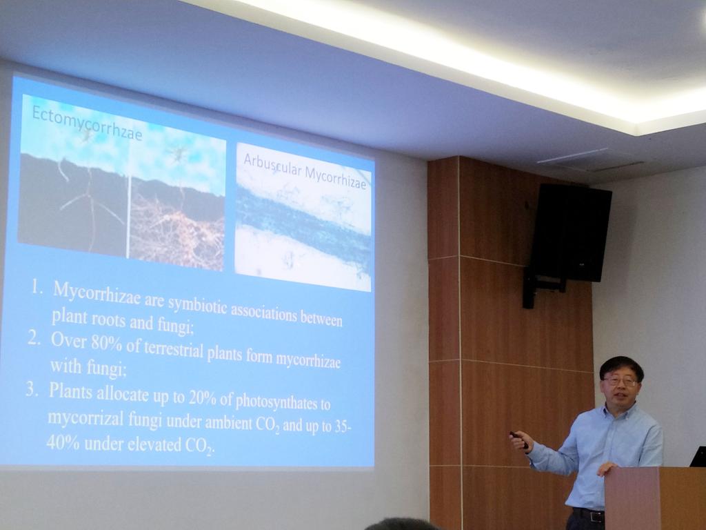 10月15日,北卡罗来纳州立大学(North Carolina State University)胡水金教授应邀来校进行学术交流,并做了题为“Plant-Soil-Microbe Interactions in a Changing Climate”的学术报告。学院60余名师生参加了报告会。