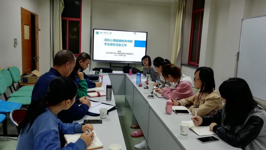 为进一步加强和创新BEAT365心理健康教育工作,提升心理育人与朋辈心理互助的专业性和积极性,完善“学校-学院-班级-宿舍”四级心理心理健康教育工作体系,日前,校心理中心邀请浙江师范大学心理中心副主任刘葵老师来校作“高校心理健康教育中的学生朋辈互助工作”培训。中心专兼职心理教师、各二级心理健康辅导站站长参加此次活动。