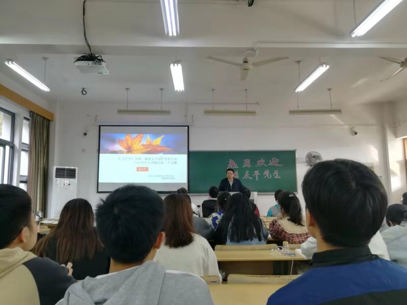 11月8日,《浮玉》杂志主编潘庆平先生应邀来校作文学创作专题讲座,汉语言文学专业师生及相关文学爱好者聆听了讲座。