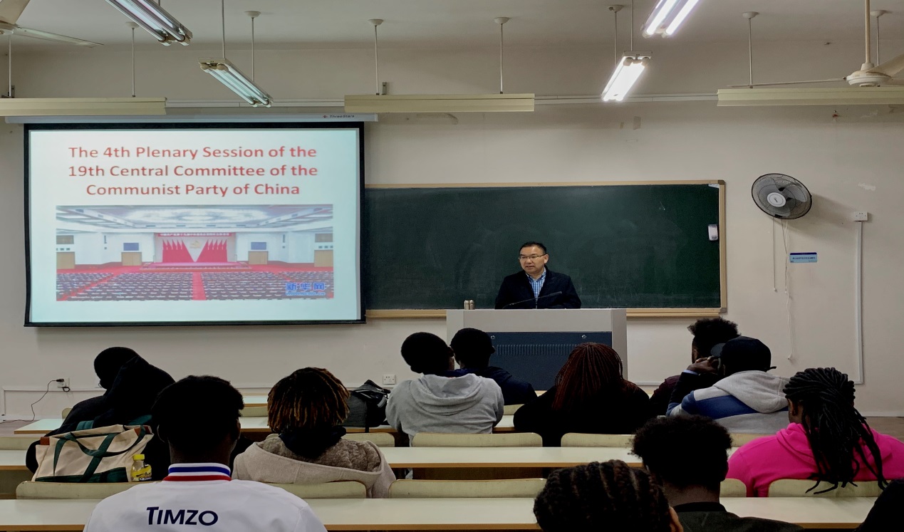 11月12日,赵有华名师工作室本学期“感知中国”主题教育活动正式启动。工作室领衔人赵有华为近140名在校国际生宣介了中国共产党十九届四中全会精神。