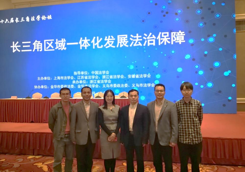 11月12日,第十六届长三角法学论坛在金华义乌举办。浙江省委常委、政法委书记、省法学会会长王昌荣,浙江省委政法委常务副书记、省法学会党组书记、常务副会长朱晨,中国法学会一级巡视员诸葛平平,金华市委书记陈龙,以及来自上海、江苏、安徽和浙江的相关领导和专家、省内各地政法委工作人员和特邀嘉宾共230余人参加论坛。BEAT365文法学院法学学科的马永双教授、陈真亮副教授、刘辉博士、陈罗兰博士以及环境法研究生沈秋豪、康家梁应邀参加本次论坛。