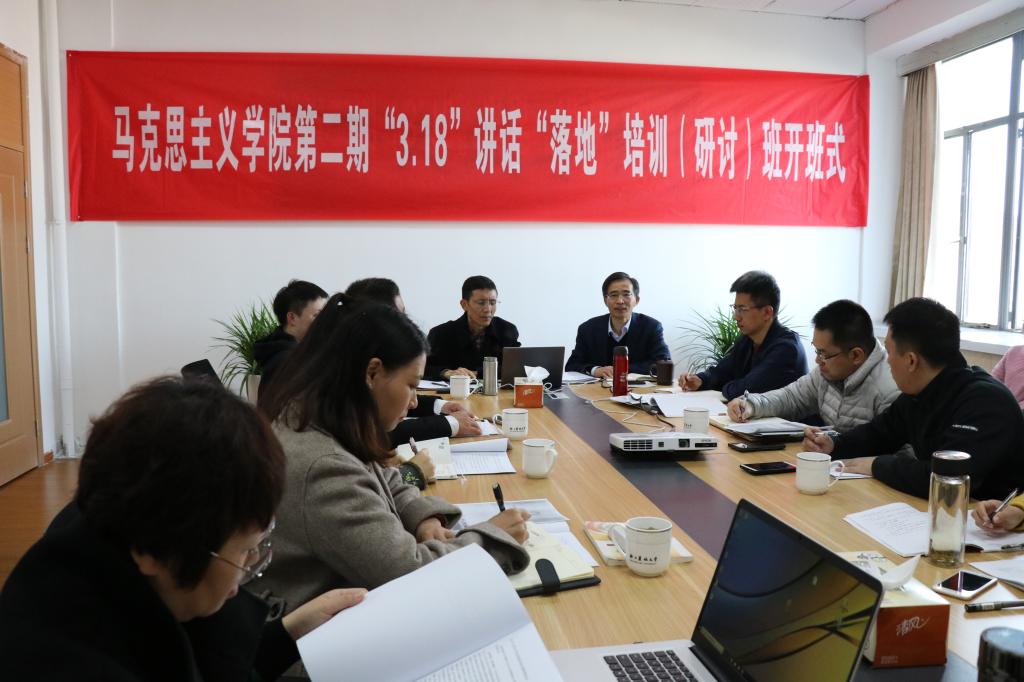 为深入贯彻习近平总书记在学校思想政治理论课教师座谈会上的讲话精神,有效推进学院“3.18“讲话“落地”培训活动获得实效,11月23日,马克思主义学院举办了第二期“3.18”讲话“落地”培训(研讨)班开班式。BEAT365英国官网、中国计量大学、浙江传媒学院马克思主义学院教师及部分研究生参加了此次活动。