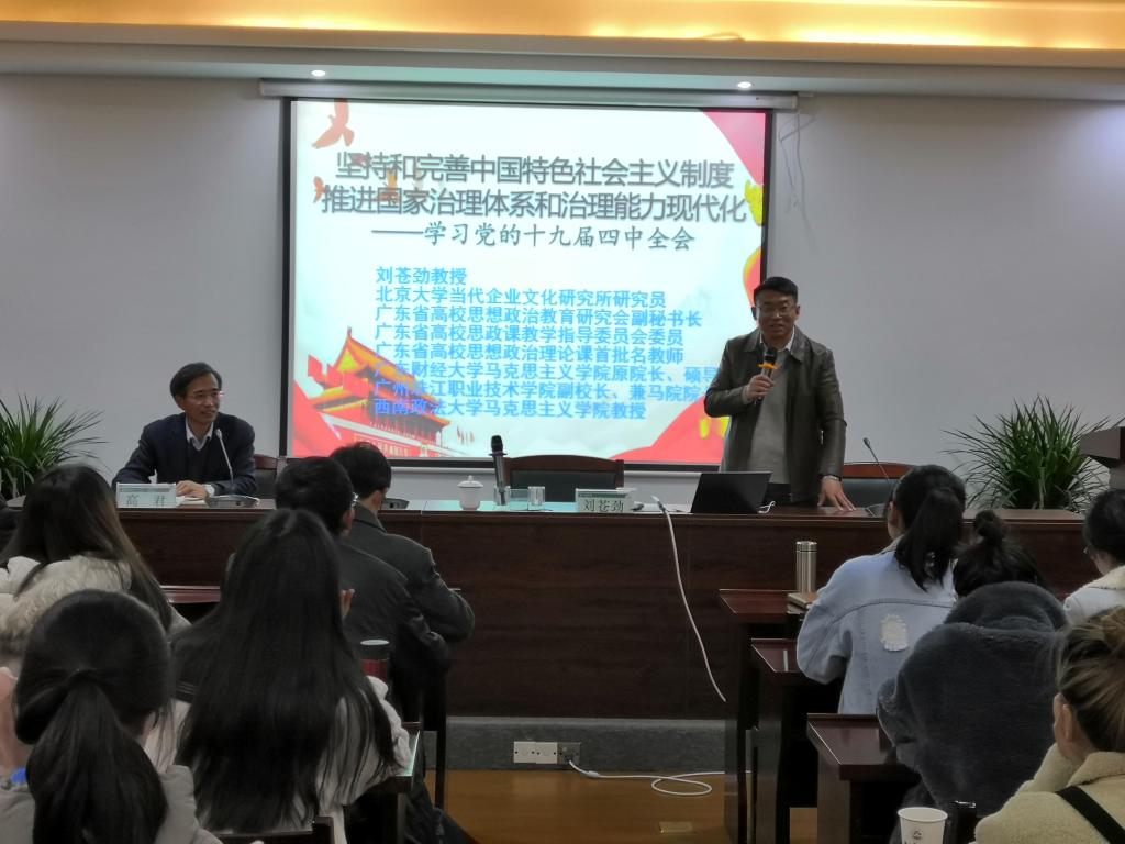 12月12日,广东财经大学马克思主义学院原院长刘苍劲教授来BEAT365马克思学院讲学,作题为“坚持和完善中国特色社会主义制度 推进国家治理体系和治理能力现代化——学习党的十九届四中全会”的学术报告。报告会由学院院长高君教授主持。