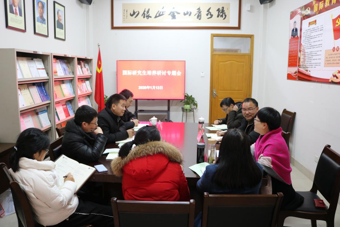 1月13日,国际教育学院召开国际研究生培养研讨专题会,国教学院、工程学院、园林学院、农学院等学院负责人,硕导代表、研究生秘书代表出席会议。
