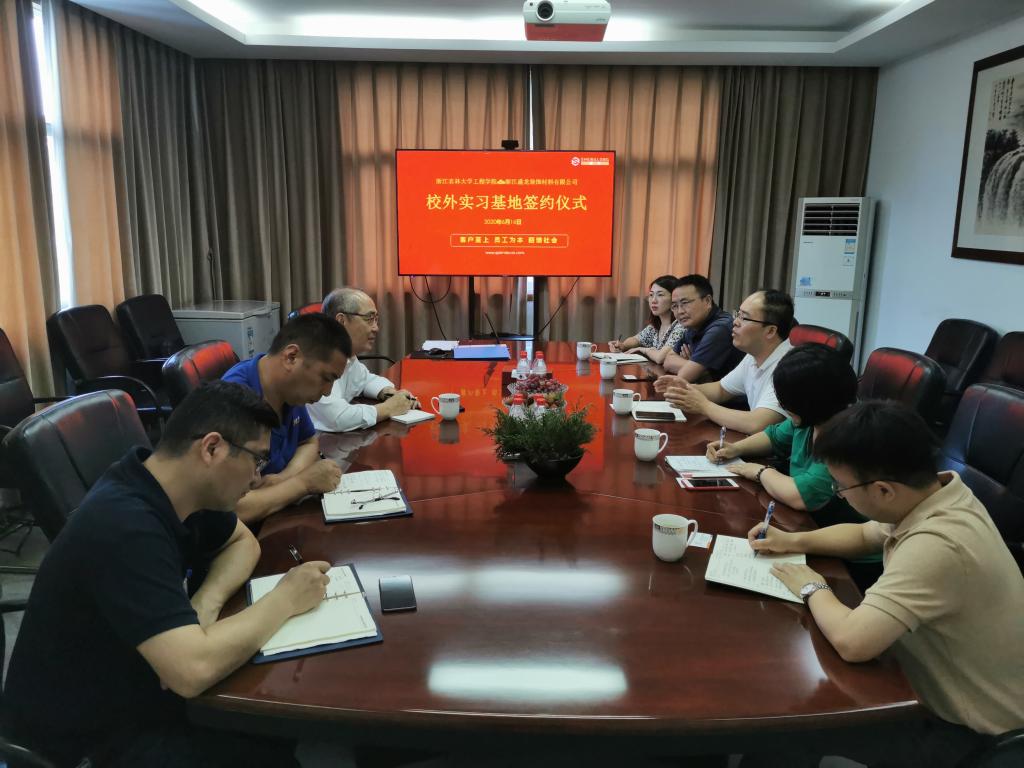 6月16日,工程学院和浙江盛龙装饰材料有限公司在临安签署研究生校外实习基地协议。校研工部负责人、工程学院学生工作负责人、工程学院农业工程/机械工程学科专业负责人,浙江盛龙装饰材料有限公司总经理陈志贤和生产总监、技术开发、生产工艺、人事等部门负责人等参加会议。