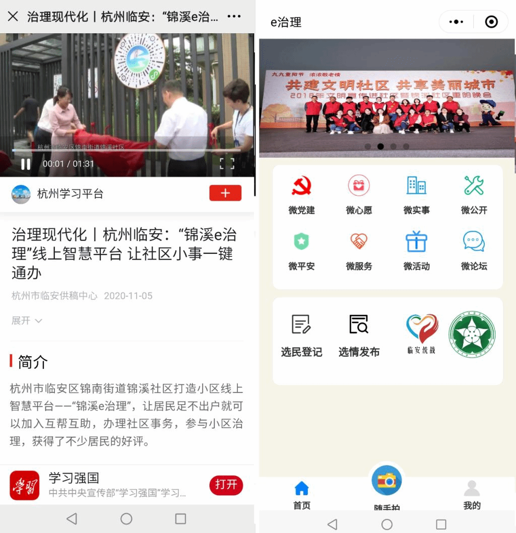 近日,信息学院胡军国教授研发的智慧社区平台在学习强国中进行了报道,9月初获浙江省委批示。为推进社区治理能力的现代化,今年5月,胡军国教授与临安区锦南街道合作,研发智慧社区平台,7月25日推出锦溪e治理平台,临安区委常委、组织部长吴洁静到场揭牌上线,本平台为社区治理提供了行之有效的方案和思路。