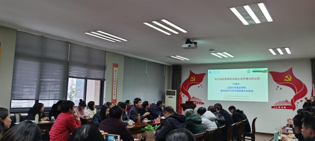 12月18日,江南大学严秀平教授为BEAT365理学院、农学院的教师和研究生做了题为“共价有机骨架的功能化及环境分析应用”的学术报告。校党委副书记冯尚申、理学院院长周国泉、学院相关负责人参加报告会。