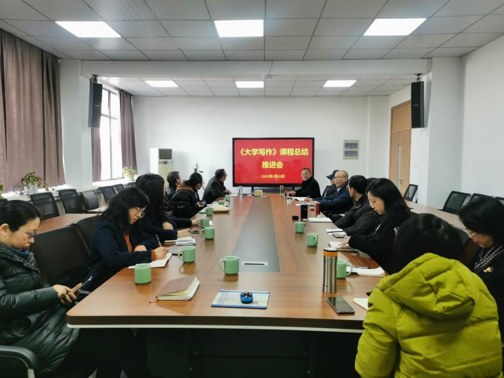 1月15日,《大学写作》课程总结推进会召开。文法学院院长王长金、相关学院负责人以及校写作中心全体教师参加。