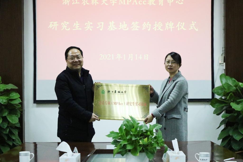 石道金为实习单位授牌,学院相关负责人代表MPAcc教育中心与两家实习单位签署了实习基地合作协议,并为校外实践导师颁发了聘书。与会人员还就学生就业实习、专业培养、产学合作等议题进行了交流讨论。