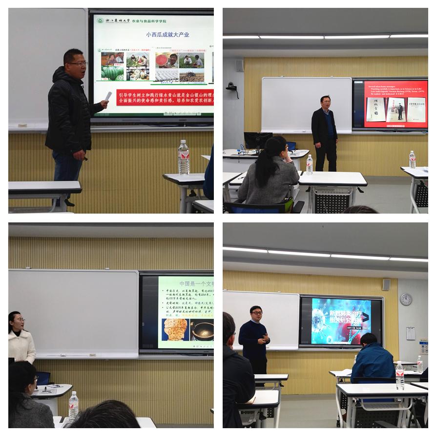 为发挥课堂教学的育人主渠道作用,进一步推进“课程思政”教学改革,探索和示范“课程思政”教学的有效途径和方法,3月11日,农学院组织开展 “课程思政”微课专项赛。比赛邀请动科动医学院课程思政研究中心王晓杜教授担任评委组组长,环资学院王懿祥教授、经管学院蒋琴儿教授担任评委。2018年-2020年助讲培养青年教师、校级优质评估课程及省级一流课程申报教师、各专业负责人、各本科教育负责人及学院教学督导参加现场观摩。