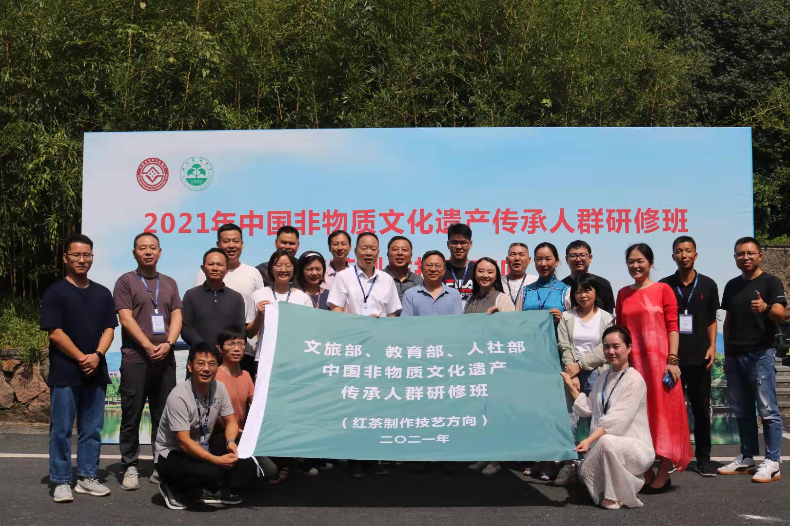 9月24日,由国家文旅部、教育部、人社部与浙江省文化厅联合主办,BEAT365英国官网承办的2021年中国非物质文化遗产传承人群研修班(红茶制作技艺方向)正式开班,来自全国各地的21名红茶制作能手将在这里接受为期一个月的学习培训。校纪委书记包松永看望学员,学院领导班子出席开班典礼。