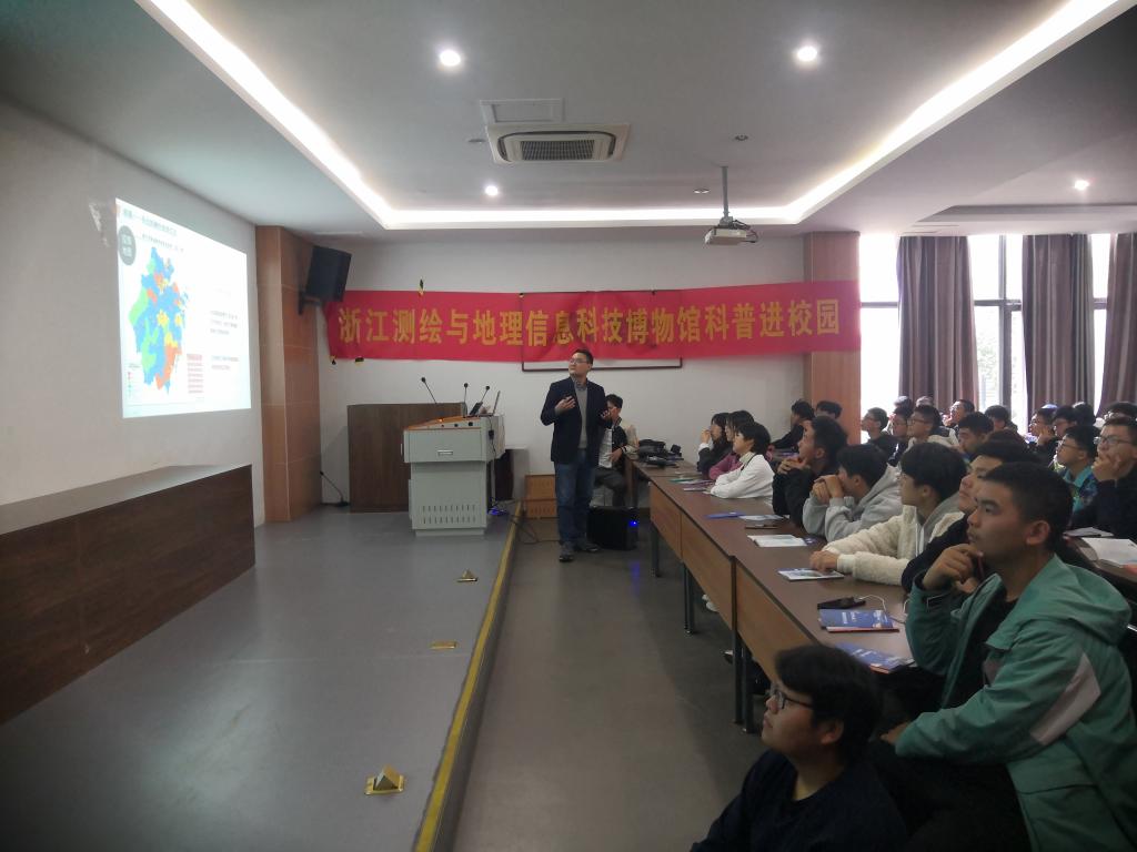 浙江省测绘科学技术研究院基础测绘中心副主任、浙江省测绘学会航测与遥感工作委员会主任余华芬为同学们做了《测绘地理信息面面观》的专题报告,介绍了测绘科技的发展历程,阐述了现代智慧测绘为数字经济建设赋能,为城市精准治理、国家总体安全和人民切身利益保驾护航。