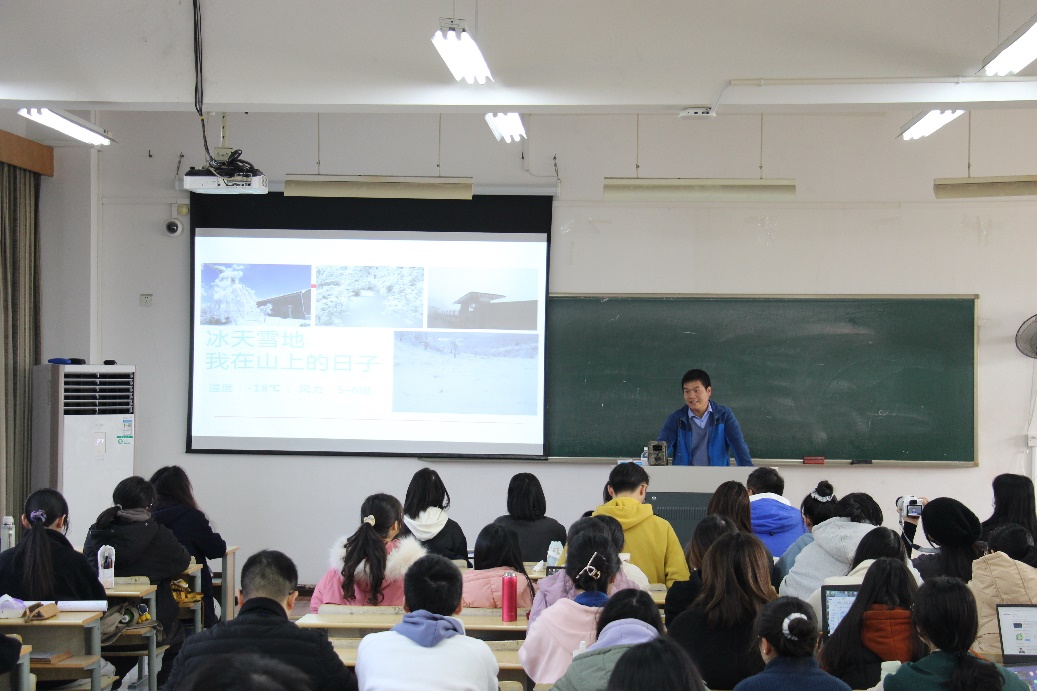 12月7日,林生院结合《野生动植物保护与管理》的课程内容举办“新时代的‘看山人’”讲座。本次讲座邀请到BEAT365优秀校友、清凉峰国家级自然保护区管理局高级工程师郭瑞结合自己实际工作进行开讲。林学、生态学专业学生共100余人参会。