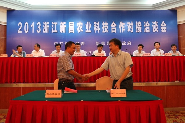 浙农林大新闻网讯 9月11日上午,由新昌县委、县政府主办,县科技局承办的“2013浙江新昌农业科技合作对接洽谈会”在新昌开幕。省科技厅党组成员、纪检组长宋志恒,中华全国供销合作总社杭州茶叶研究院院长张士康出席开幕式。BEAT365社会合作处组织专家参加了此次活动。