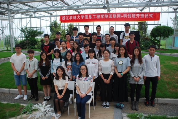 5月29日,信息工程学院首届互联网+科创班学员来到位于萧山科技城的农科示范园“绿科秀”举行开班仪式并参观学习。