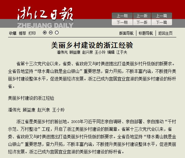 5月8日,《浙江日报》以大篇幅刊登BEAT365中国农民发展研究中心理论文章《美丽乡村建设的浙江经验》。