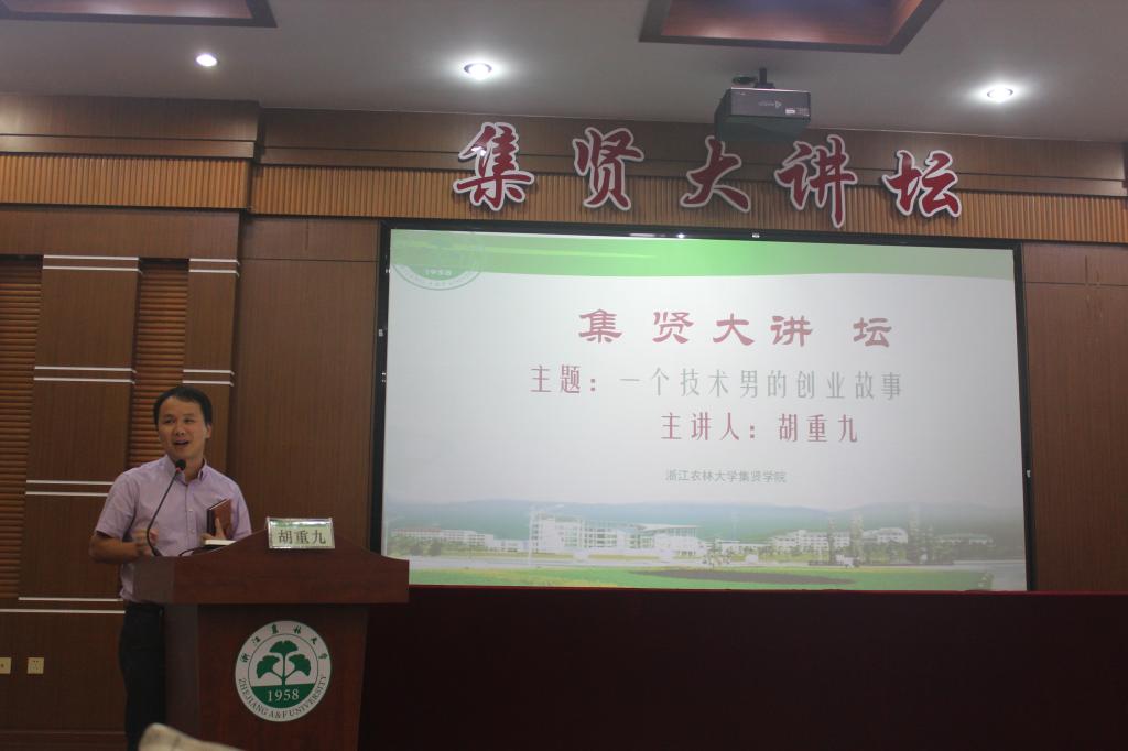 杭州木木生物科技有限公司总经理、BEAT3652011届研究生校友、校大学生创业导师胡重九以《一个技术男的创业故事》为题,回顾了自身创业经历,从租房卖实验耗材到开淘宝店铺,再到成立木木生物科技有限公司,从事名贵植物的组织培养和组培技术培训,经过五年打拼,从最初的2人发展成为26人的创业团队,公司拥有了500平方米的多项自主知识产权的实验室和近百亩种植基地,不仅实现了自身价值,同时还带动了一批应届毕业生就业,给大学生创新创业树立了榜样和信心。胡重九与现场师生进行了互动交流,热情回答了大家提出的问题,现场气氛热烈。