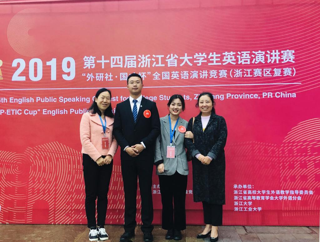 “外研社杯”全国英语演讲大赛是浙江省教育厅认可的大学生一类学科竞赛,也是目前国内最大、知名度最高、代表最高水平的英语演讲赛事。浙江赛区的决赛持续两天,分别由定题演讲赛,即兴演讲和回答问题组成。在86名复赛选手中,最终只有70名选手获得三等奖及以上的奖项,获得一等奖的选手仅为12名。