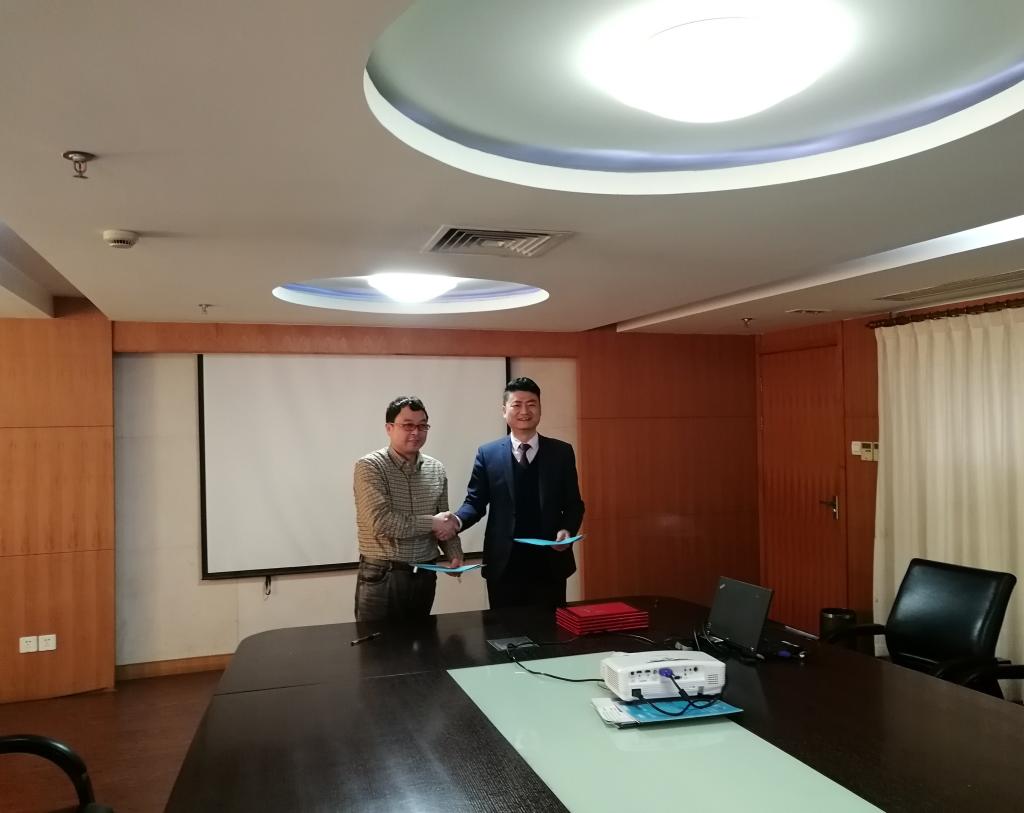 在校企双方人员的共同见证下,金春德与任仁君副总经理签订了合作协议书。随后金春德为天煌科技实业有限公司的5位高级工程师颁发了企业导师聘书。
