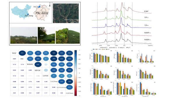土壤碳研究对于缓解全球温室效应乃至人类社会可持续发展等问题具有重大意义。本研究探讨常绿阔叶林(EBFs)转变为茶园(TPs)和毛竹人工林(MBPs)后长期集约经营对土壤有机碳库及其组分的影响,采用13C核磁共振波谱(NMR)测定土壤有机碳(SOC)的化学组成。研究表明,土地利用转化和后续集约经营显著改变了土壤有机碳的化学结构和活性碳库,因此,可以采取合理施肥、生草栽培等措施以增加经济林土壤碳输入。