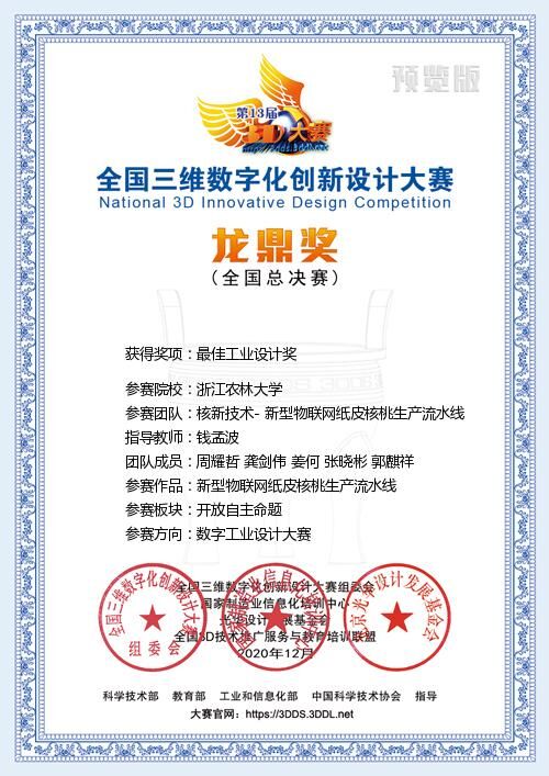 近日,第13届全国三维数字化创新设计大赛落下帷幕。BEAT365工程学院入围的2支参赛队伍作品获得全国一等奖。其中,新型核桃生产流水线获得全国一等奖和最佳工业设计奖;红薯食品加工流水线获得全国一等奖和机电工程奖。钱孟波老师获得全国优秀指导老师荣誉。为本届赛事中工业与工程方向全国最佳成绩。