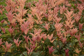 彩叶桂是桂花家族中不可多得的一类品种,其不同发育程度的新叶呈现不同颜色,观赏价值很高,是新兴的彩叶植物,可做盆栽、绿篱,也可作为小乔木栽培,具有广阔的应用前景。获得授权的2个彩叶桂品种经过近10年培育而成。‘凝脂香’叶片初期从暗紫色变为紫红色,后逐渐变为橘粉色、橘黄色;‘暖金香’叶片从初期的粉红色变为橘色,逐渐变为橘粉色、黄色。观赏周期超过1个月,是优良的彩叶小乔木。