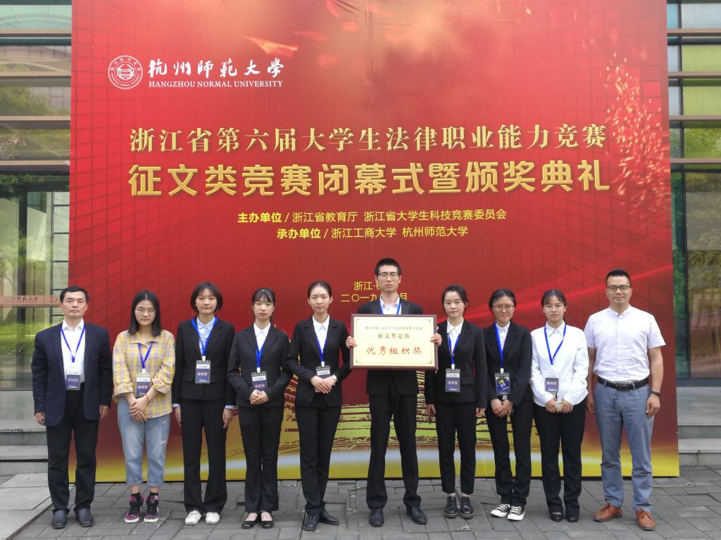 据了解,法律征文竞赛是浙江省法律职业能力竞赛四大赛之一。本次竞赛由浙江省教育厅、浙江省大学生科技竞赛委员会主办,杭州师范大学承办,比赛以“改革开放四十年与中国法治发展”为主题,共有30所高校、478支队伍报名参赛,共产生一等奖24项,二等奖51项、三等奖102项。