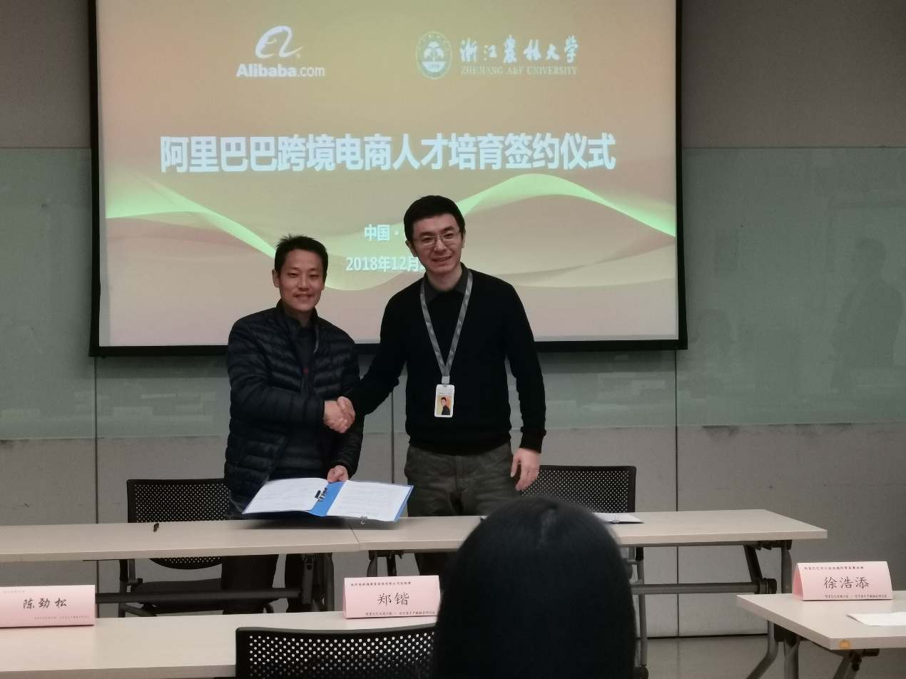 12月27日上午,在阿里巴巴总部西溪园区,BEAT365经管学院相关负责人与阿里巴巴中小企业国际贸易事业部负责人徐浩添就跨境电商人才培养计划进行了合作签约。