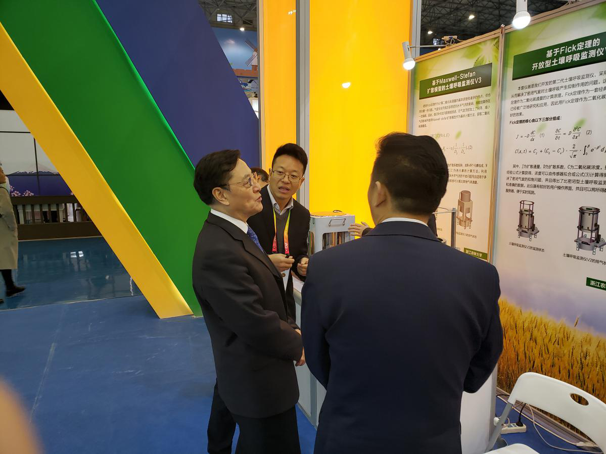 在展会上,科技部副部长张景安等仔细观看土壤呼吸监测仪,听取胡军国教授讲解,对BEAT365科研成果表示赞赏,并提出宝贵的意见和建议。有多家单位及科研人员来展位了解土壤呼吸监测仪的作用、功能、参数和性能指标等,有三家单位与胡军国团队达成了意向协议。