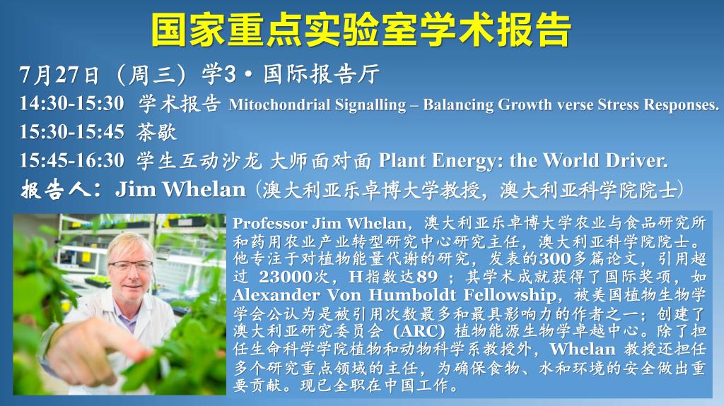 讲座预告:Plant energy:the world driver.