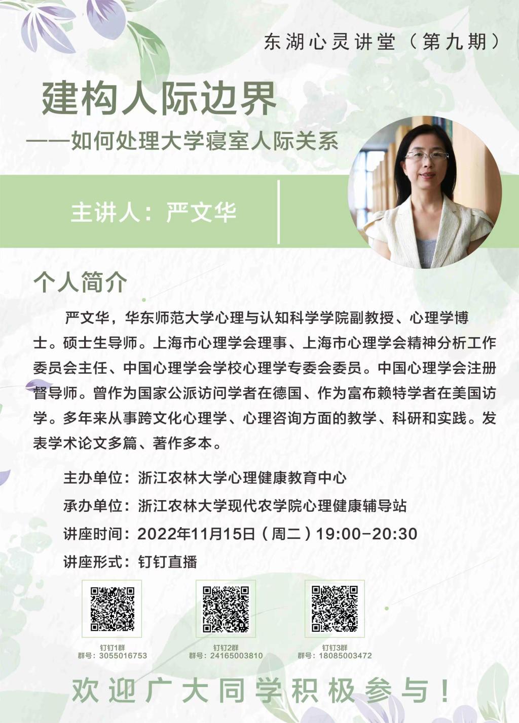 讲座预告:建构人际边界——如何处理大学寝室人际关系