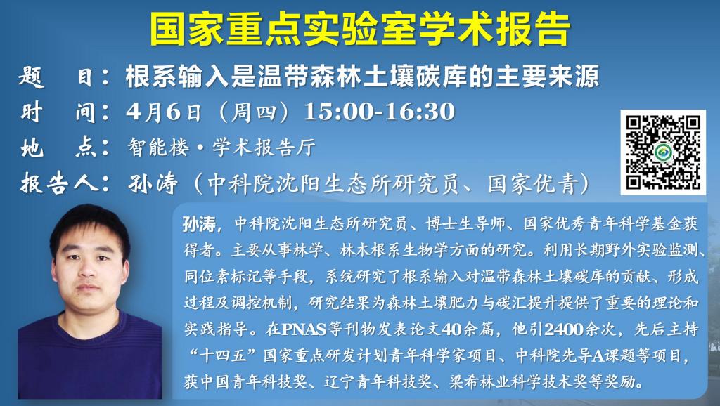 讲座预告:根系输入是温带森林土壤碳库的主要来源