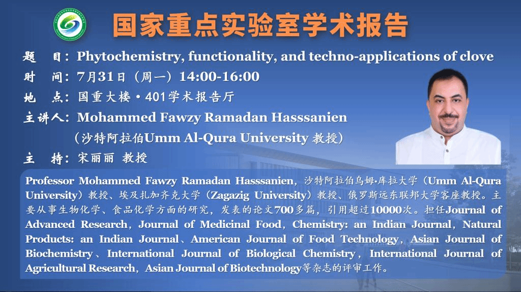 讲座预告:Phytochemistry, functionality, and techno-applications of clove