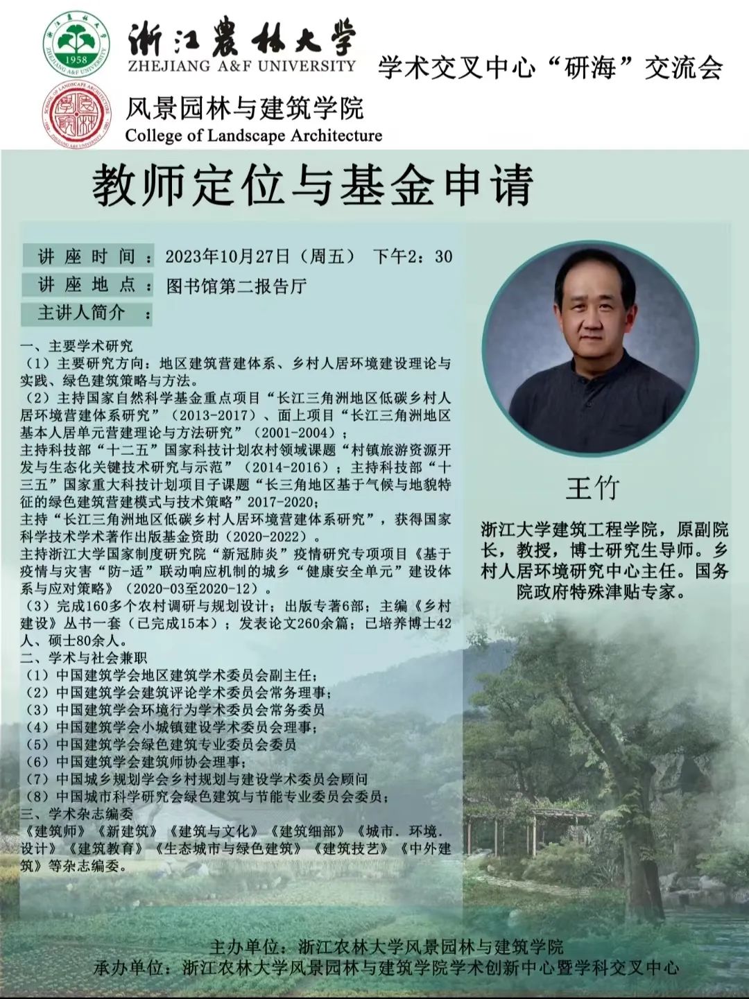 【发布日期: 2023-10-23】 【来源:风景园林与建筑学院 】 【作者:马淇蔚】 【编辑:郝璞玉】 【点击量: