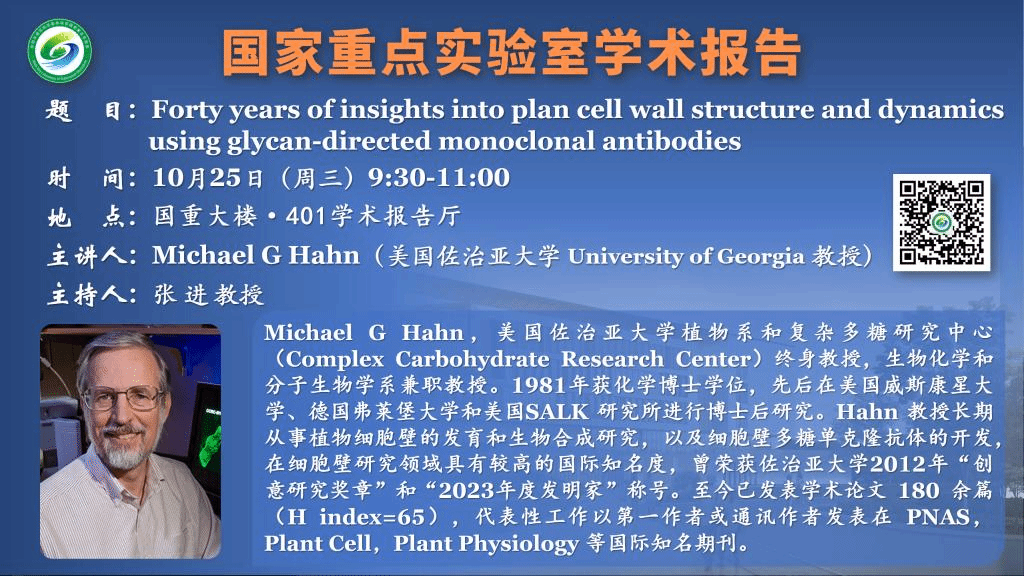 讲座预告:Forty years of insights into plan cell wall structure and dynamics using glycan-directed monoclonal antibodies